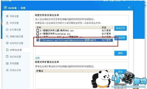 添加了文件白名单360杀毒就不会在查杀他了