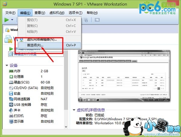 1、打开VMware Workstation,点击菜单中的“编辑-首选项”;