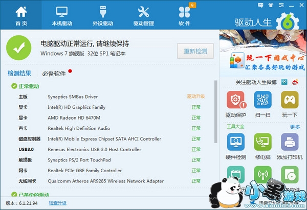 重新打开驱动人生,你可以给电脑的驱动进行驱动检测。当看到驱动人生检测出你的某个驱动需要升级时,童鞋们的反应可能是马上进行升级,但这样可能会导致电脑出现异常。小编提醒大家,驱动程序并不是最新的就是最好的,自己的电脑系统可能不兼容最新的驱动程序,因此会使电脑出现异常。只要电脑运行没有出现异常,没有提醒你更新某个驱动程序,你就可以不用更新。