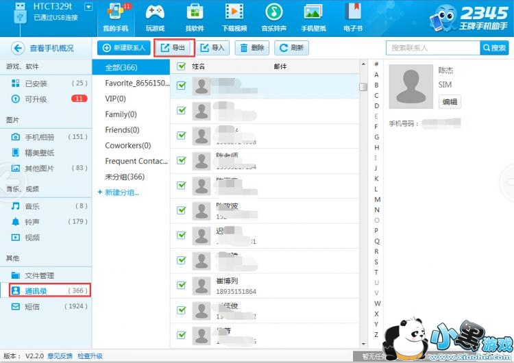 步骤二、选中想要导出联系人,选择“导出”!,导出文件到电脑本地。