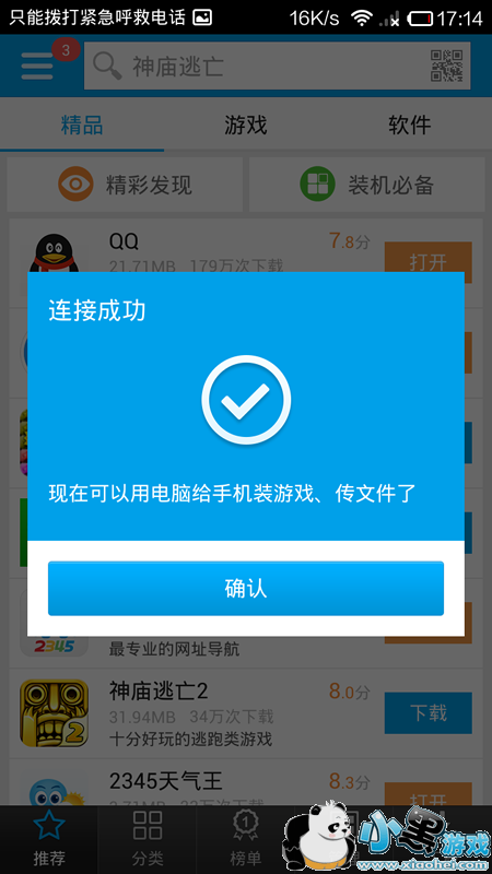 手机与电脑端连接成功之后,可以在电脑端管理手机资源,下载安装应用、壁纸、音乐等,通过数据线连接,还可以在电脑端演示手机端画面,截屏等。
