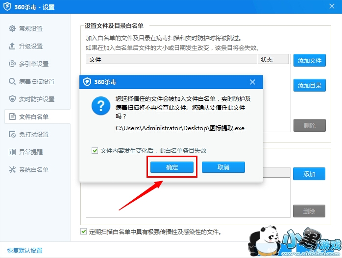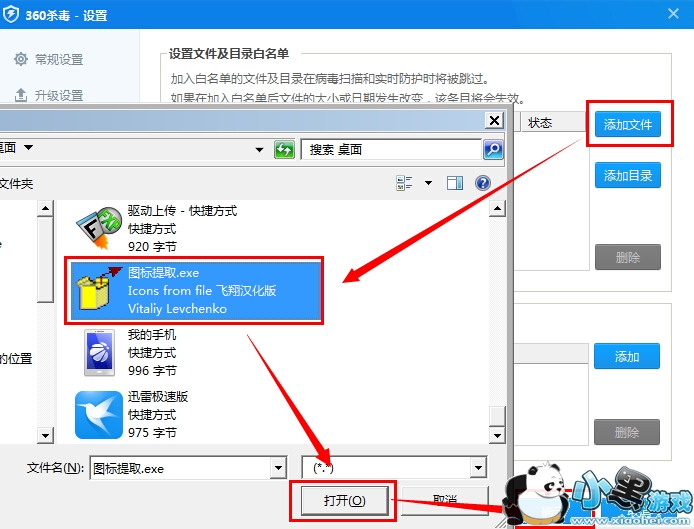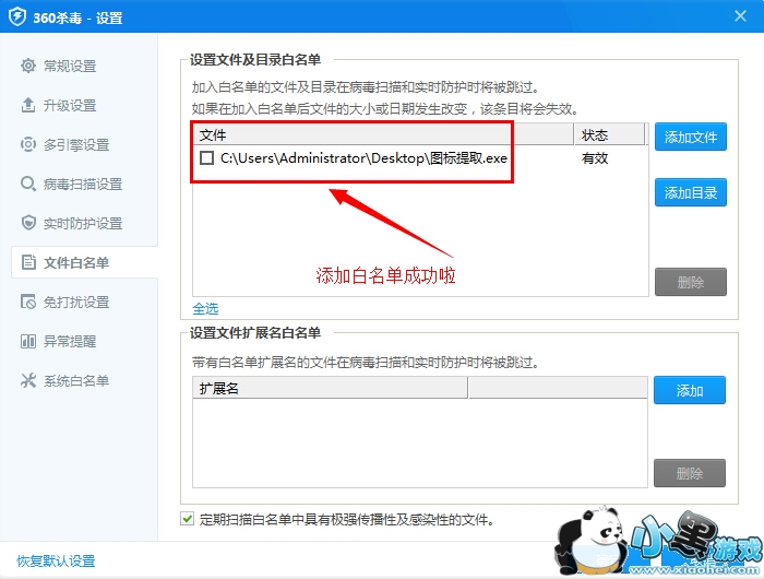 3.在里面有三个白名单设置,以第一个为例。点击添加文件进行设置。把文件添加进来即可。