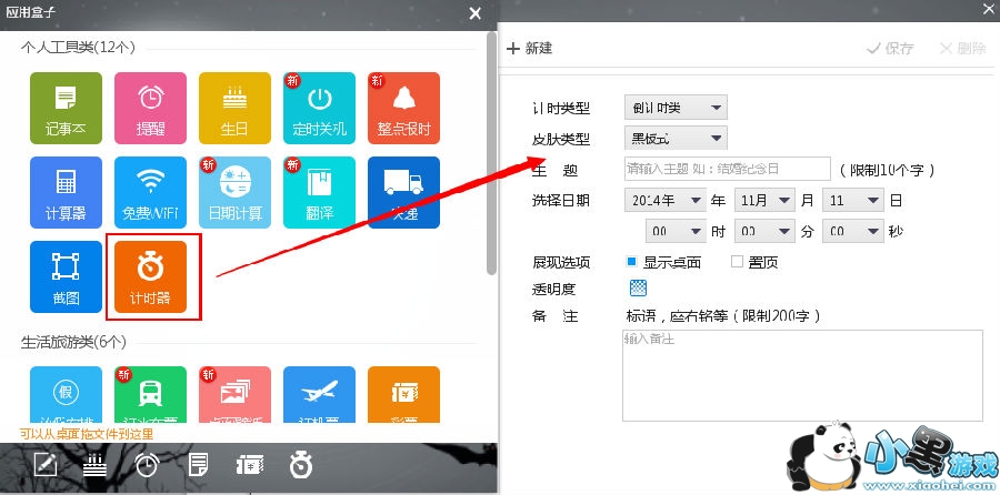 点击计时器按钮,就会弹出计时器设置选项,直接设置你需要的提醒即可。呈现在桌面的样式、提醒的时间,都可以自由选择。