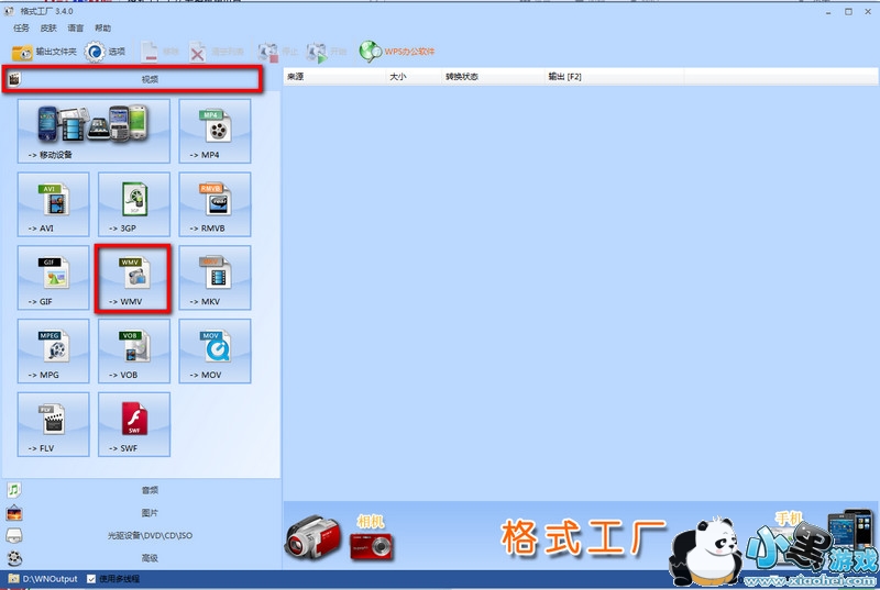 第一步:在桌面找到程序,打开格式工厂软件,单击[转换为WMV]按钮