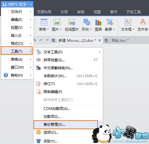 第一步:打开wps,点击菜单中的【工具】-->【备份管理】