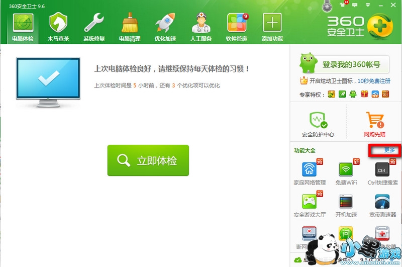 第一步:打开“360安全卫士”程序,在右边的框框里,找到“更多”,点击“更多功能”项。