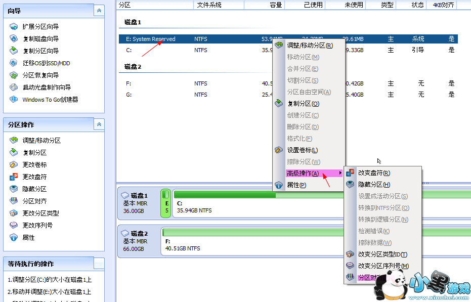1、下载免费的分区助手,安装并运行它,以下图为例,选定E盘点击鼠标右键依次选择“高级操作”—“分区对齐”。