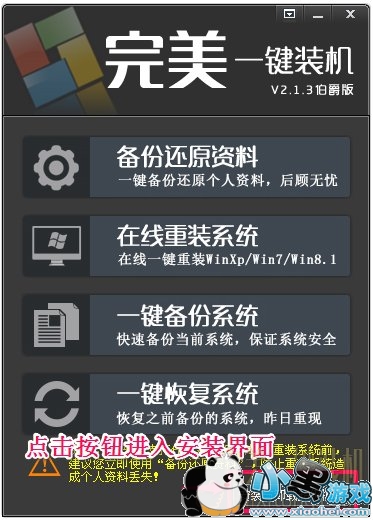 | 软件名称: | 完美一键装机v2.1.3官方版 |