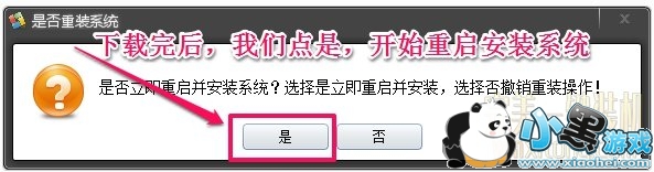 2.等待下载完成后,我们点击"是"立即重启并安装系统。