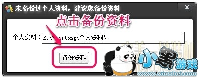 2.点击按钮后,会弹出个备份还原窗口,我们直接点备份资料按钮软件会自动备份,直到弹出个确认按钮,我们确认下就完成了!