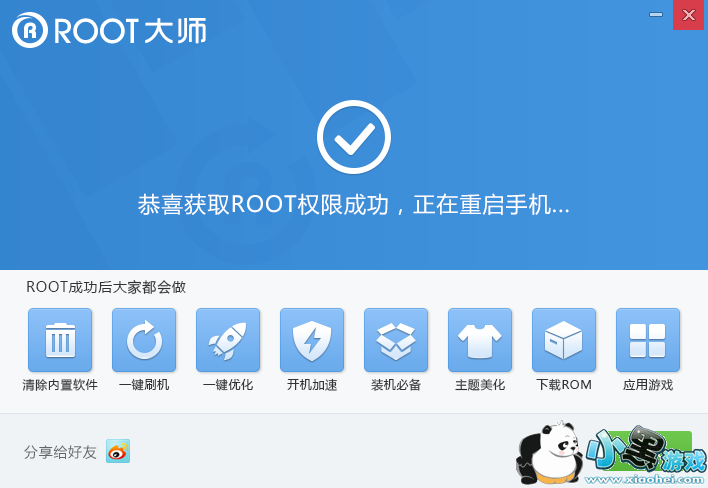 一般不超过5分钟,就会显示“ROOT权限已获取”,查看手机上多了一个root大师手机版软件就表示手机已经成功ROOT了,想ROOT的三星i9300用户快自己试试吧。