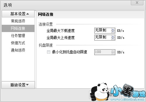 1.在风行右上角的菜单 “设置”->“选项”->“网络连接”,点“全局最大上传速度”,适当限制上传速度,如35K