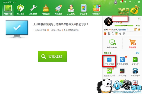 1、打开360安全卫士,在右下角的功能里面找到“任务管理器”