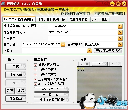 如下图所示,超级捕快支持录制摄像头、数码摄像机、电视卡等的视频。通过点击“DV/DC/TV/摄像头捕捉”选项卡即可实现。譬如,你可以将自己弹吉他,演奏古筝等通过摄像头捕捉功能,录制下来,上传到网上和网友们分享的。