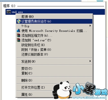 第四步:在开始菜单搜索"cmd" 在"cmd"上右键以管理员身份运行,在弹出确认的窗口里点“是”