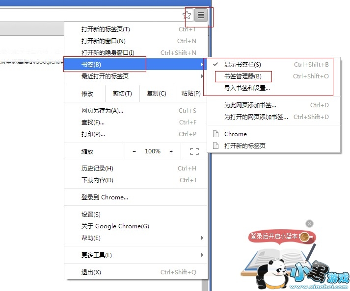 第三步:点击书签-书签管理器,打开书签管理器界面中·