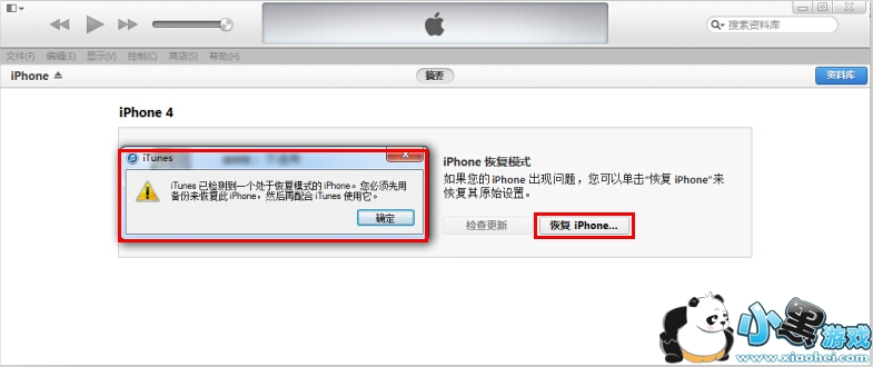 当然,你可以用iTunes来进行恢复(很多人见到“连接iTunes图形”,本能地就是启动iTunes!但是你会发现:除了“恢复”以外,无路可走)!但恢复的“最好结果”是:你的手机又恢复到出厂状态了!恢复不好,不知道会是什么样呢?!这时,就凸显出爱思助手的价值之一了!