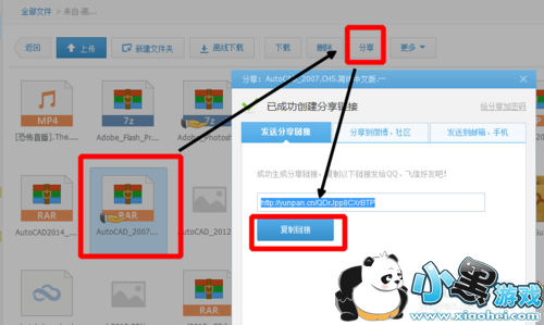 首先选中你要离线到百度云的文件,右击或上面工具里选择分享文件,弹出一个分享链接,再单击复制链接字样,就将这个链接复制下来了。