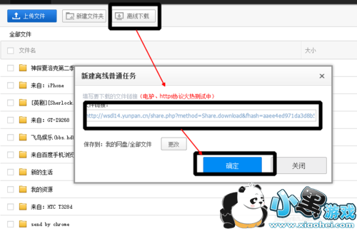 到百度云里,打开离线下载,新建普通任务,将刚才的地址粘贴进去,开始离线。