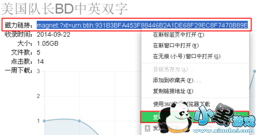 首先我们先找到提供有磁力链接的电影,然后“复制磁力链接地址”