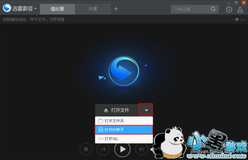 首先打开迅雷影音播放器主界面,先点击“打开文件”选择“打开BT种子”