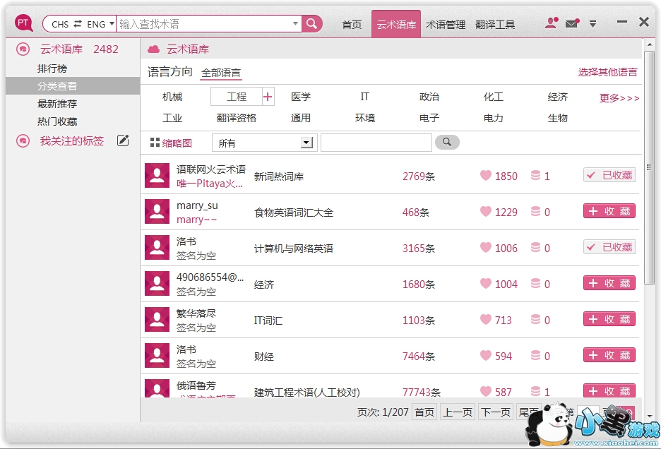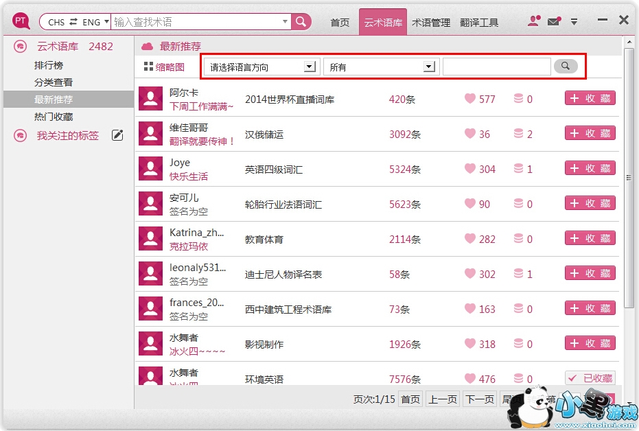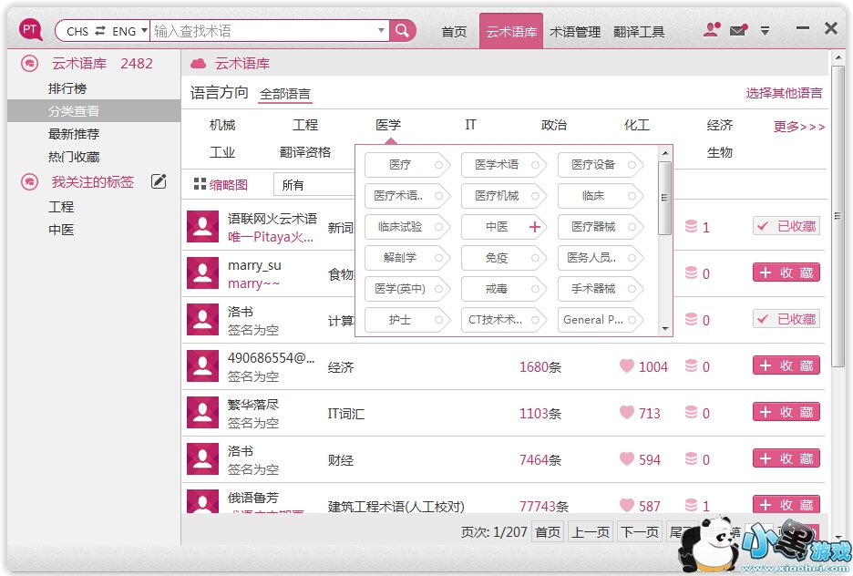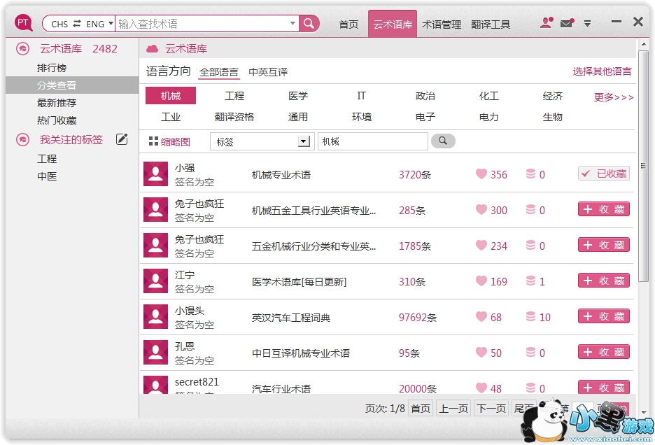 点击热门标签将显示包含该标签的所有共享术语库。点“更多”可查看更多标签。
