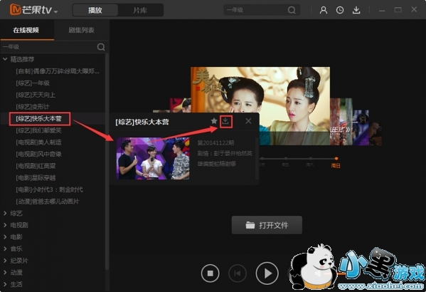 1.在pc6下载安装芒果tv客户端最新版,打开后选择要下载的视频,小编以快乐大本营为例。鼠标点击后右边会弹出一个框,然后再点星星右边的下载按钮。