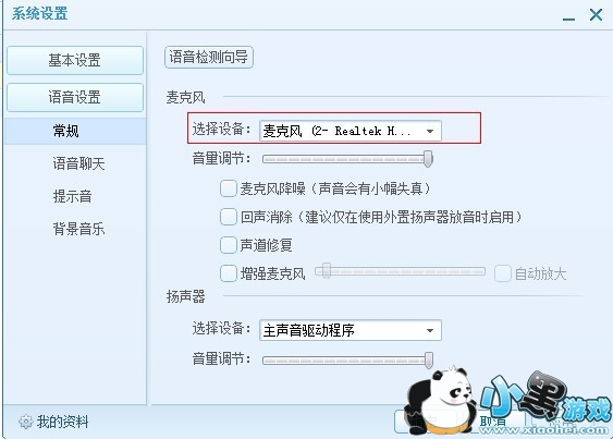 2.请您尝试说话,看能否说话么。如果不能说话,再依次把麦克风的选择设备换为其他的设备,直到您能说话为止,如果您一直不能说话,那请您换个新麦克。