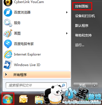 1.点击【开始】菜单,打开【控制面板】