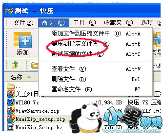 或从"命令菜单"选择"解压到指定文件夹"。