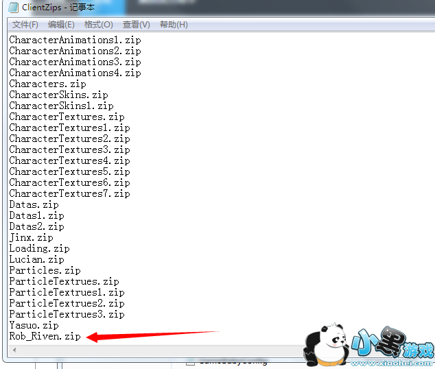 3、打开ClientZips.txt 将你要挂载的皮肤添加到文本的最后一行