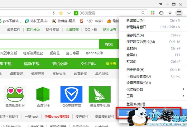 步骤一:打开“360极速浏览器”,点击右上角的设置图标,下拉菜单,选择“选项”。(不同版本之间,选项位置可能有点变化)