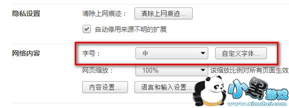 步骤三:进入高级设置后,就可以看到一个网页内容,字号的设置,我们可以选择其中的默认的“极小、小、中、大、极大”。