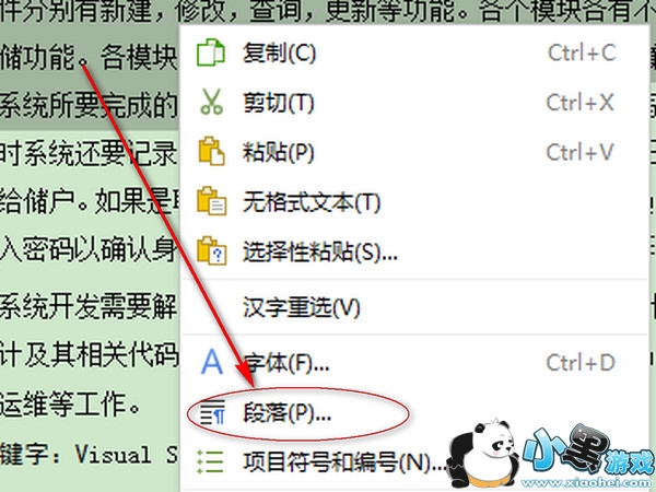 2、选中你要设置行间距的文字,右击--->点击段落选项