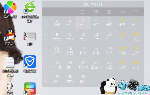 这样人生日历就可以像壁纸一样以透明的形式显示在桌面上了,方便我们查看日期。