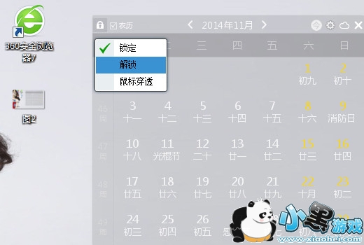 相信注意细节的小伙伴,一定发现了还有一个鼠标穿透的功能。鼠标穿透功能是指选择此功能后,您只能看日历而不能在界面上进行任何操作,就像壁纸日历一样,既美观又实用。