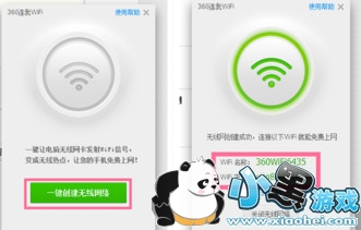 步骤四:在弹出的360连我wifi界面点击“一键创建无线网络”,这时等待360自动创建无线网络,创建成功后,根据360连我wifi提供的账号密码,你就可以连接无线网络使用了