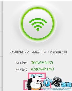 步骤五:如果你觉得360连我wifi提供的密码太过复杂可以点击“修改密码”修改成自己熟悉的密码。不想使用的时候点击“关闭无线网络”即可