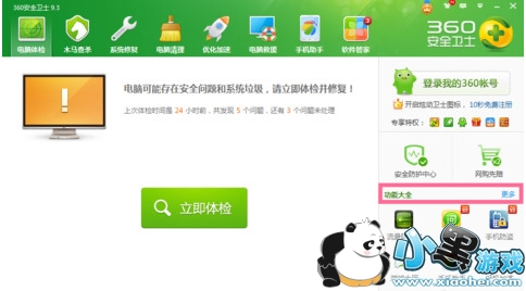 步骤二:打开你的360安全卫士软件再点击界面左侧功能大全里的“更多”。