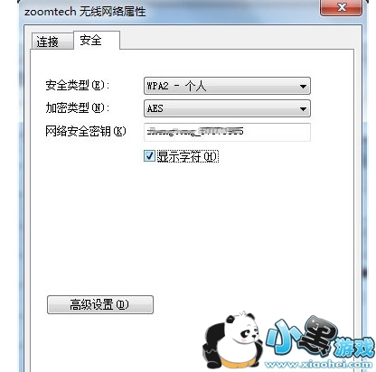 第二步:这个时候你就可以看到这个网络的属性,然后你选择“安全”,这个时候你可以看到你的无线密码的账号以及类型