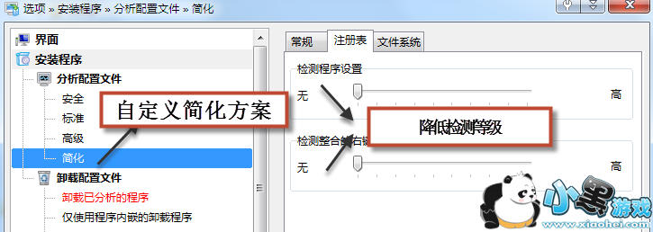 自定义配置是一种参数模板,可以额外创建用户的配置。比如默认的配置都需要严格检测安装文件位置,拖慢分析速度。如图所示,可以创建额外的“简化”配置,降低文件检测等级。不重要的软件卸载时,可以利用“简化”配置,用精确换速度,提升分析效率。
