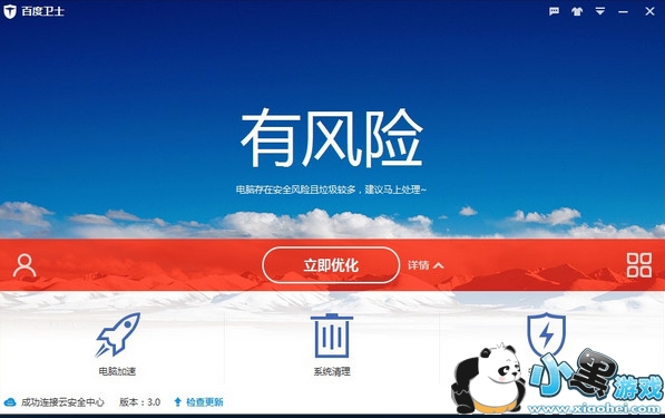 百度卫士采用实时更新健康状态的方式,开启后可以立即显示电脑健康状态。如果电脑状况不理想,百度卫士会显示电脑状态为“亚健康”或“有风险”,并告知需要被优化的项目。点击“立即优化”,便可快速优化所有项目,使电脑达到健康状态!还可以通过电脑加速、系统清理、安全维护、软件管理、个人中心和百宝箱六大服务精确地帮助电脑进行优化。