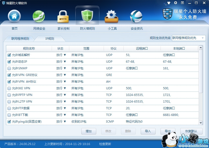 | 软件名称: | 瑞星个人防火墙2014 v24.00.24.29免费版 |