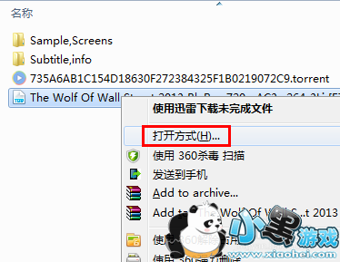 从打开的目录中,找到正在下载的视频文件,右击选择“打开方式”。