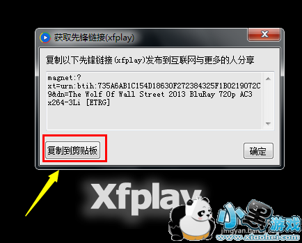 在打开的“获取先锋链接”窗口中,点击“复制到剪贴板”按钮。