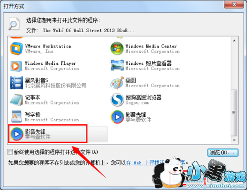 然后选择“影音先锋”,并点击“确定”按钮。