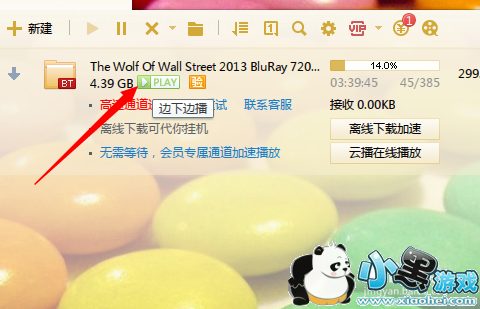 当然,我们也可以使用迅雷看看播放器实现边看边下载。只需要在迅雷界面中,点击“Play”按钮就可以啦。