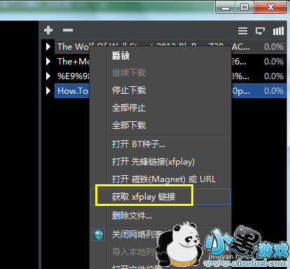 当出现影音先锋无法播放视频的情况时,右击播放列表中相应的视频文件,从弹出的右键菜单中选择“获取xfplay链接”项。