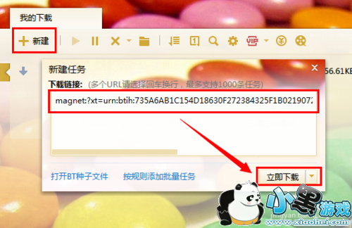 接下来打开“迅雷”程序,点击“新建”按钮,然后将视频地址粘贴到新打开的窗口中,并点击“立即下载”按钮。