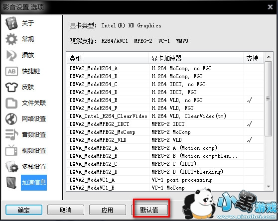 5、点击“加速信息”随时观看加速的支持情况,如果出现意外情况,点击下面的“默认值”恢复初始状态。